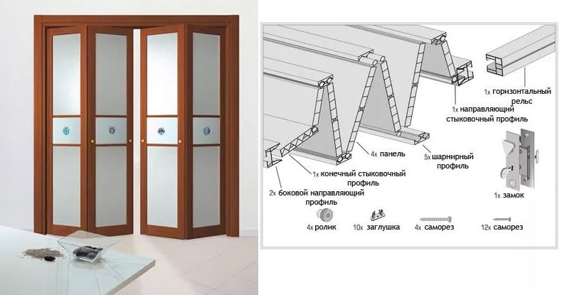 When buying an accordion door, you will definitely get a kit with the necessary spare parts for its installation. You will get acquainted with the step-by-step instruction and the detailed scheme of fastening the individual parts. Be sure to study all the theoretical material in order to assemble the door-accordion correctly, quickly and without problems.