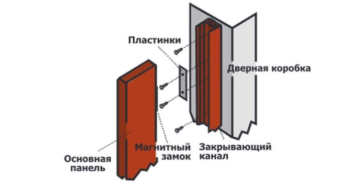 Wood or MDF structures are fastened using the long axis, which must pass through the lugs - or using loops. For installation of plastic doors, special gaskets and grooves are used.The final step is mounting the rollers on the top of the panels.