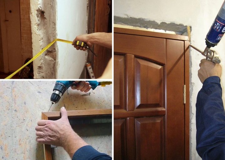 Another option is to completely replace the box.To do this, it is necessary to remove the old door frame, as well as carefully knock down the old solution so that only the concrete wall remains. Only after that you can proceed to install the box. To do this, measure the length and width of the door leaf and the opening. If the opening needs to be enlarged, use a perforator, and to reduce the need, prepared in advance dobor and timber will be useful.