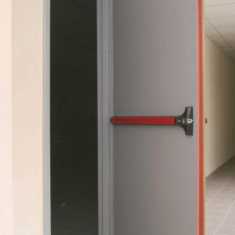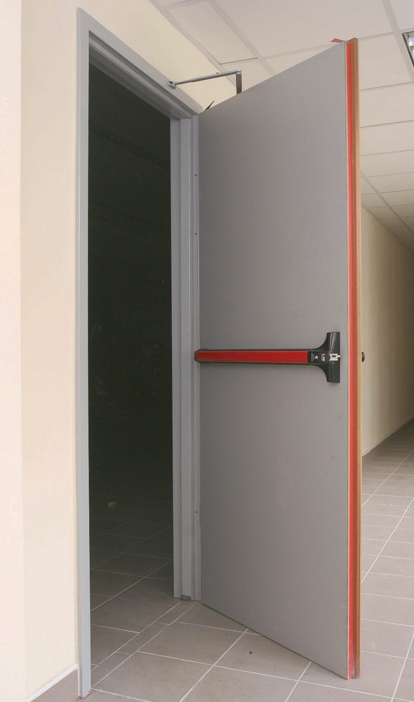 Another type of flame-retardant attributes - intrusive design. They are installed in places where there is a risk of explosion and stored flammable materials. This type of door has a standard set: painting, equipment with a profile box with or without a threshold, thermally expanding sealing tape (protects against smoke).