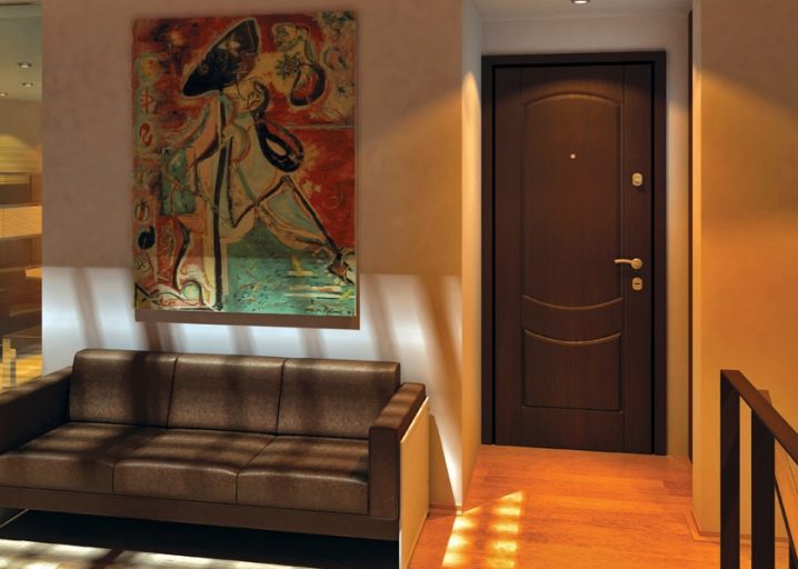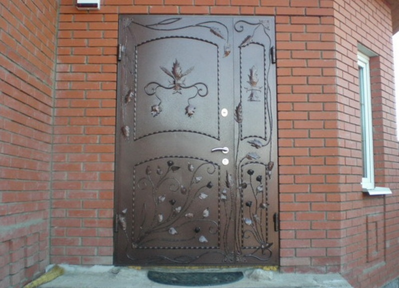 - Wood. They are restricted models, so they can be placed at the entrance to a dwelling. Inside this design is a special seal - at high temperatures, it foams and seals the inside of the canvas. The product may be covered with steel sheets.