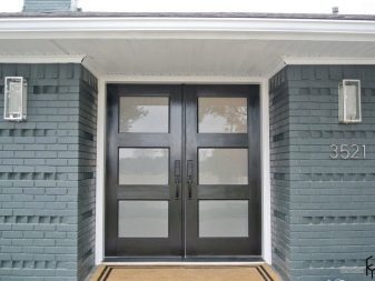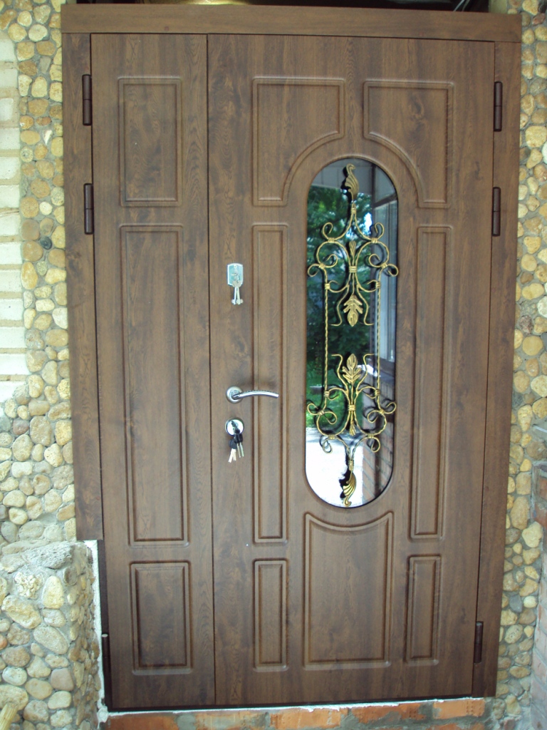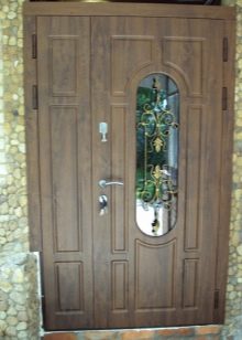 - Metal-plastic - has a strong protection system, fairly light in weight, comes with glass units of various sizes and sizes.When the profile is reinforced, such doors are installed in “thermos houses”.