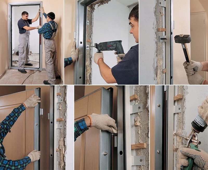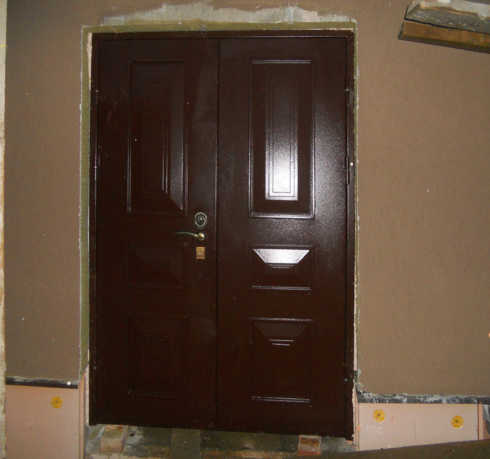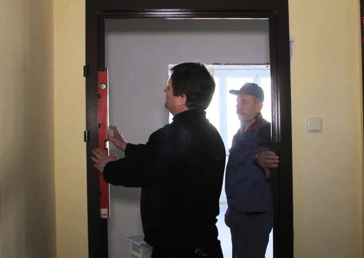 Rigid metal structures need smooth walls, so the degree of curvature of the walls is determined using a level. In the case of a large curvature, the entrance metal door with the box is aligned to the standard size with regard to technical clearances. The same actions are made with the threshold.