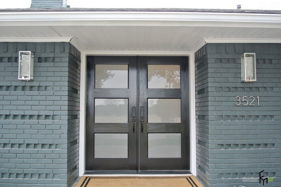 Modern equipment makes it possible to produce canvases and boxes of any configuration with the most sophisticated design solution. You can allow arched forms with stained glass inserts on the transom, decorated with forging, or tricuspid blocks with a complex combination of metal and glass. A must-have addition is a visor that will reduce the impact of an aggressive environment on the canvas and will allow to prolong its service life.
