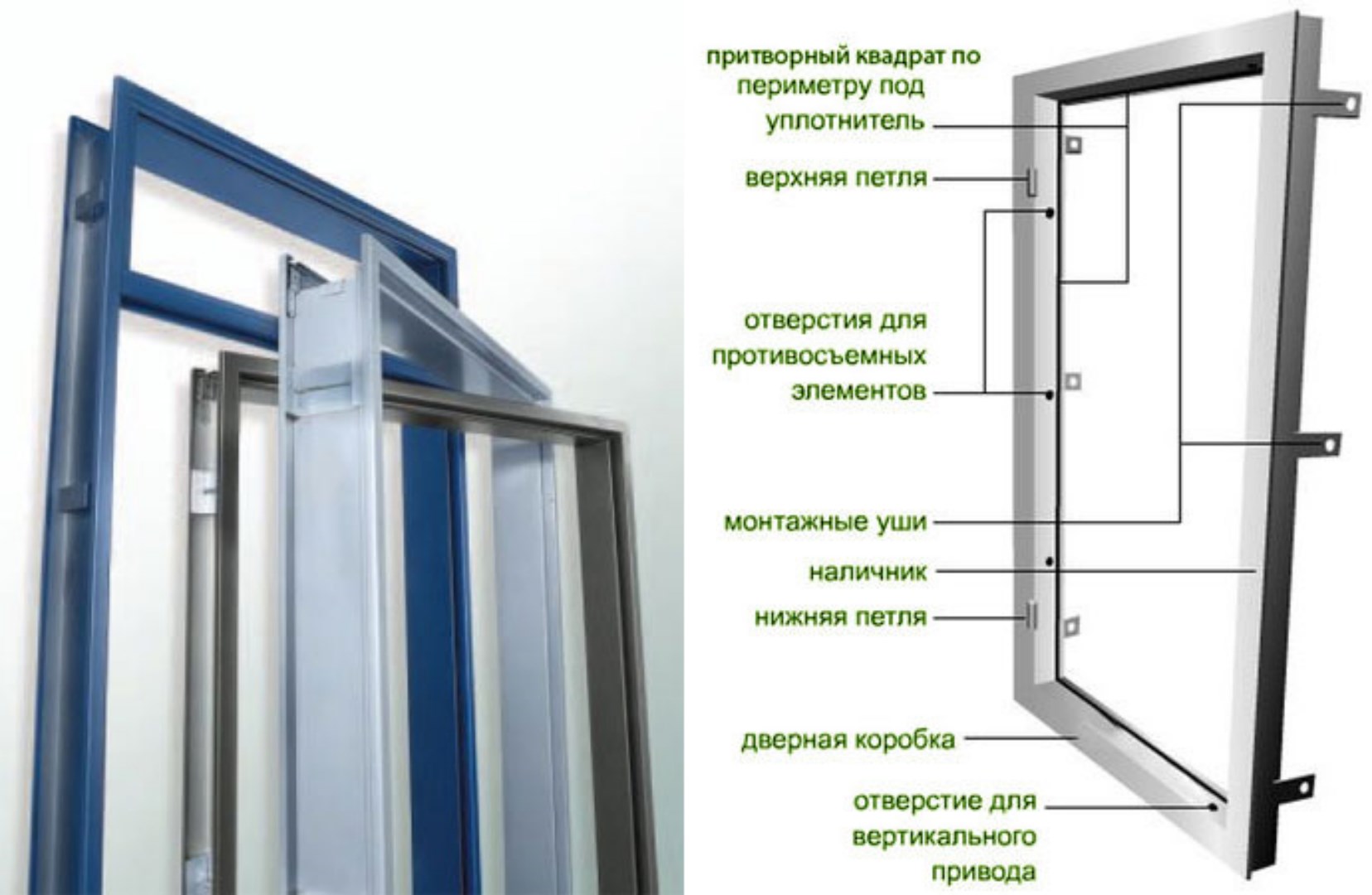 the box is from the corner of a closed rectangular or U-shaped form (the threshold is ready or made separately), its components: crossbar, guides;