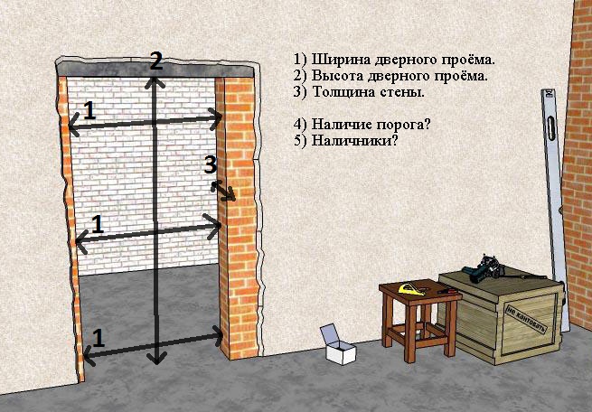 Before taking measurements, it is necessary to dismantle old doors, including door trim. If necessary, remove the threshold.