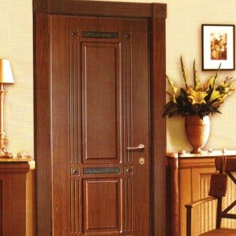 Some entrance steel doors may have a trim in the form of protective panels. The most relevant products are the color of oak, walnut and wenge. Professional designers recommend choosing a door color that will not be dominant. It is believed that this option is the most harmoniously combined with the overall situation.