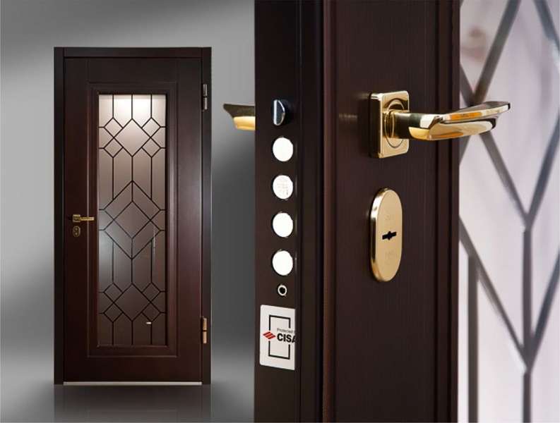 Steel exterior doors are equipped with reinforced locks, which belong to 13 classes of burglar resistance. The higher the class of the locking mechanism, the more reliable is the door construction, and accordingly, the higher its cost. Fittings and constituent elements of such doors are selected with special care so that all the equipment is as durable and complete as possible.