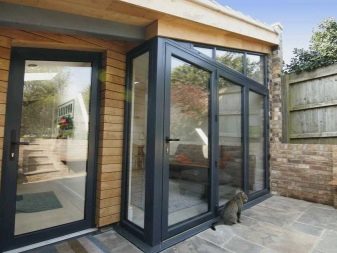One of the most non-standard examples is sliding or automatic doors, and hinged doors also belong to them. They have a fairly high cost, but it is justified. Such addition to the house or cottage will make it fashionable and modern.