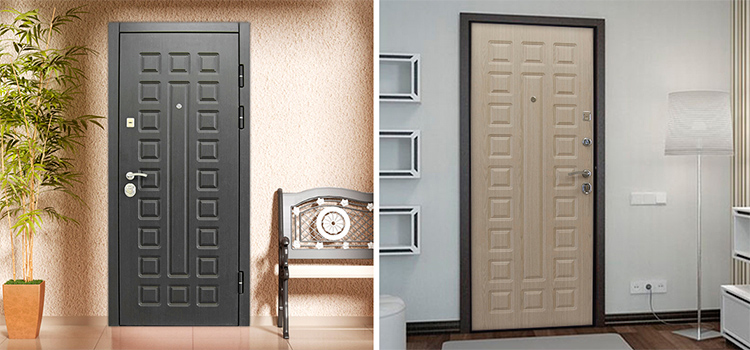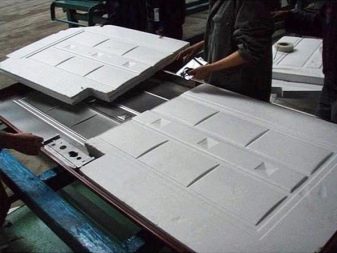 The production of these models begins with the welding of a large frame, in the middle of which is placed insulating material with high-quality sound insulation. It is installed between two sheets of metal, filling the U-shaped ribs. In addition, inside the U-shaped ribs of the metal frame, the level of noise absorption is improved by MDF panels or vinyl artificial leather. Powder coating helps prevent mechanical damage. The door with this treatment looks much more original, and it is very difficult to damage it.