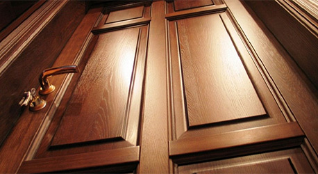 With wooden doors, everything is much simpler, since the tree itself is sound absorbing material. Also, the level of sound insulation of such doors affects their thickness. The thicker the product, the better the insulation. The most common types of wood for the manufacture of entrance doors are oak, walnut, ash, cherry and some conifers. Such an eco-friendly product is able to regulate the humidity-temperature balance of the room. For coloring use various kinds of dyes (sometimes varnished).