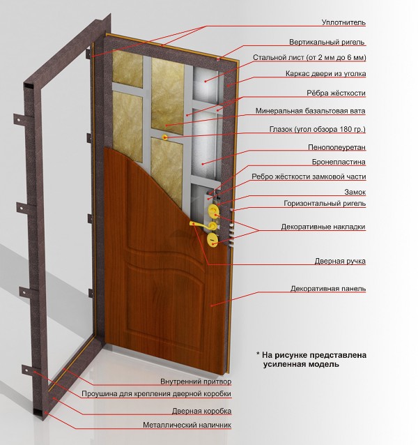 - Corrugated board. The most affordable option offered, however, is most often used in low-cost doors, and does not always satisfy the needs of high-rise residents for protection against noise.