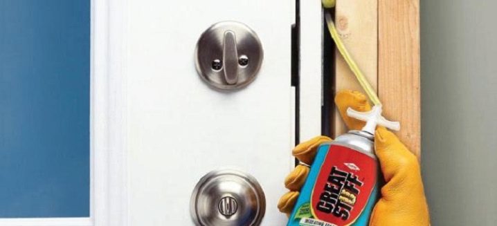 - Recently, to blow out unnecessary slits, use mounting foam. Also, you can use adhesive insulating tape, which is glued around the perimeter of the product and helps to soundproof the metal door.