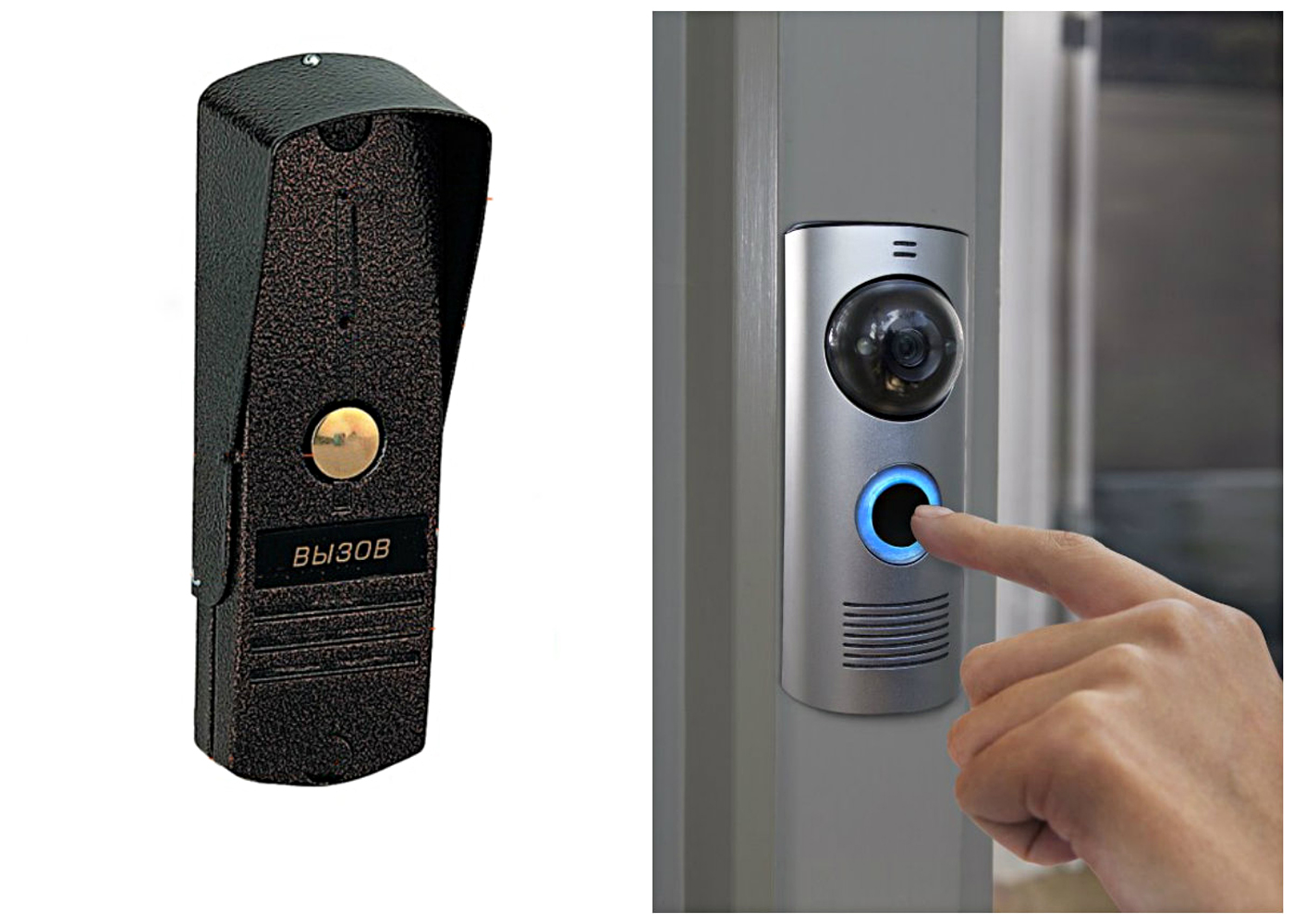 - The external call panel protected from malefactors by the strong case. On it are located the button for giving of a signal and a video camera. Installation of this part of the video call is made near the entrance door. Some more advanced models also have motion sensors, IR illuminators for night surveillance, and also an intercom system to determine the purpose of the visit;