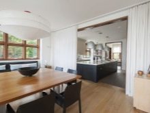 However, every rule can be circumvented. For additional decoration of such openings are used curtains, muskets, screens. They allow you to create the illusion of separation of the room, while not completely replacing the door.