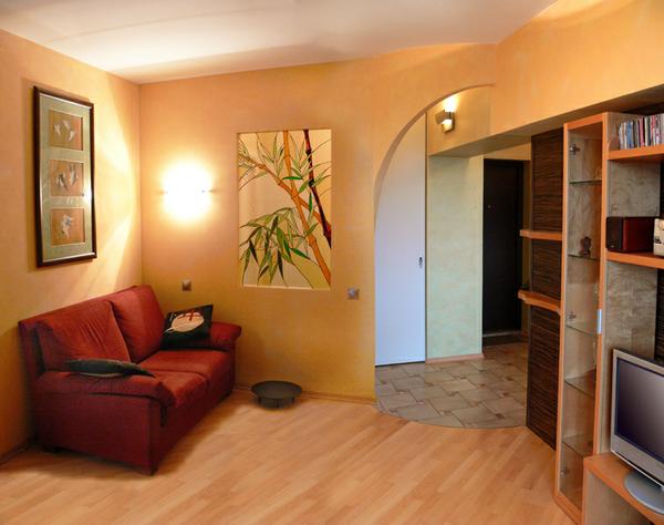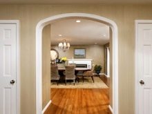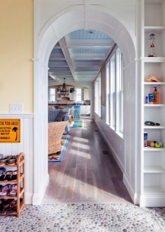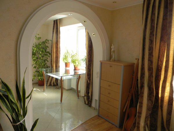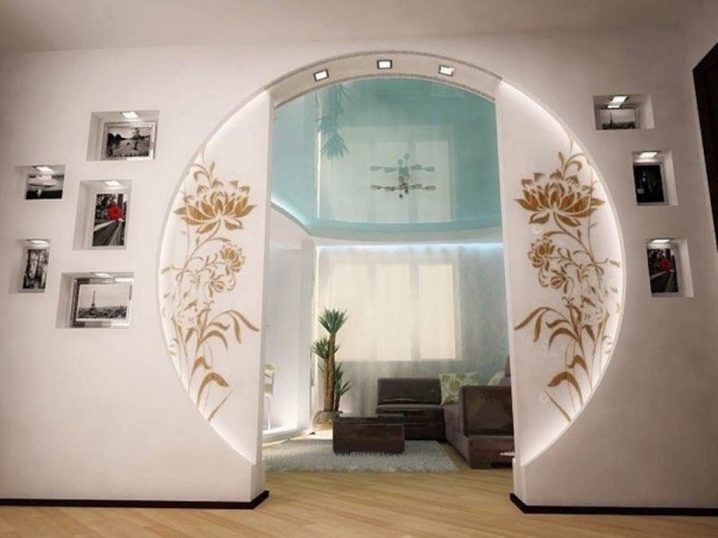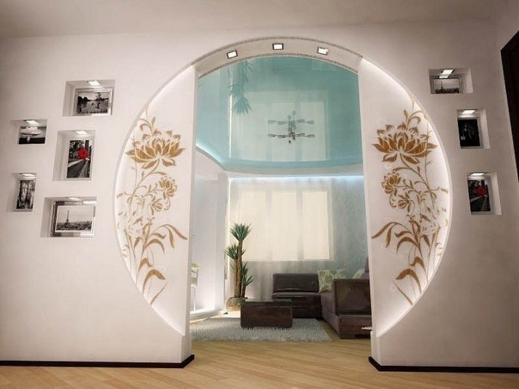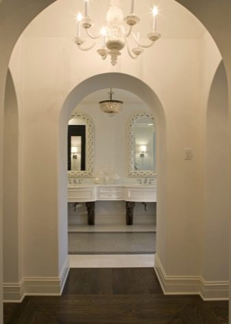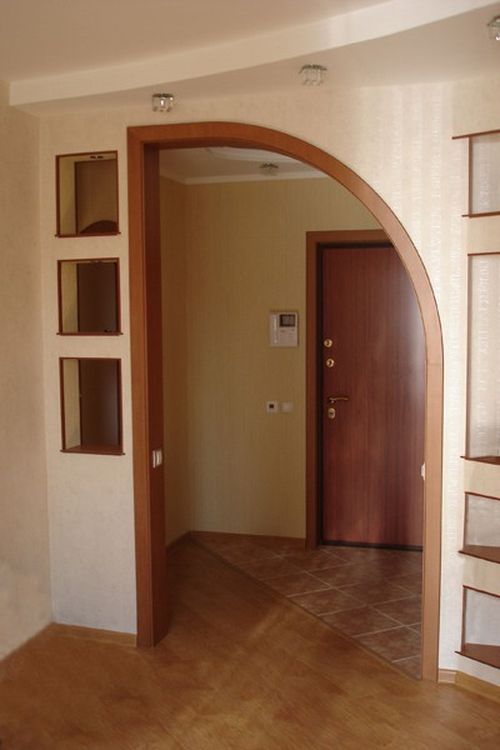 More popular construction arched constructs. For this, it is not necessary to expand the opening in the wall; in recent years, the idea of creating false arches has been actively used. In this case, angular elements made of polyurethane or drywall with rounded sides are installed in a rectangular span, and as a result, a full-fledged arch is obtained with much less money and labor.However, this method is not suitable for all dwellings: it is necessary that the opening has sufficient height.