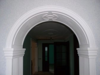 An aperture of complex shape, supplemented by columns and stucco, it is most appropriate to use in living rooms. As is known, the use of stucco elements hints at the correlation of a room with any style implying such details (for example, Rococo, Baroque, Venetian, and others). Wide openings look awkward in small roomsso, having decided on a similar step, be convinced of its relevance.