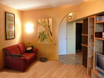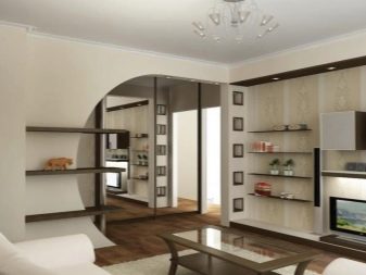 In cases where such a small apartment has low ceilings, it is better not to choose an arched shape as the opening.It is much more logical to stay on the classic rectangular span.