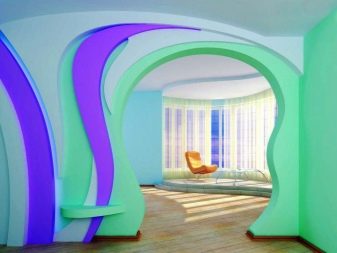 In recent years, when planning an interior, designers have increasingly resorted to such an unusual solution as arches of unconventional forms. They can be round, in the form of keyholes, with shelves or even with a bar. It is most convenient to recreate such constructions from drywall, as it is the most plastic, does not crumble and does not break when creating small curls and other details.