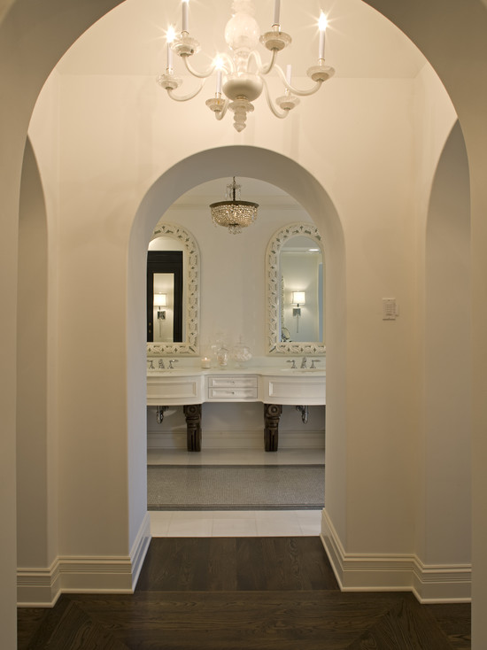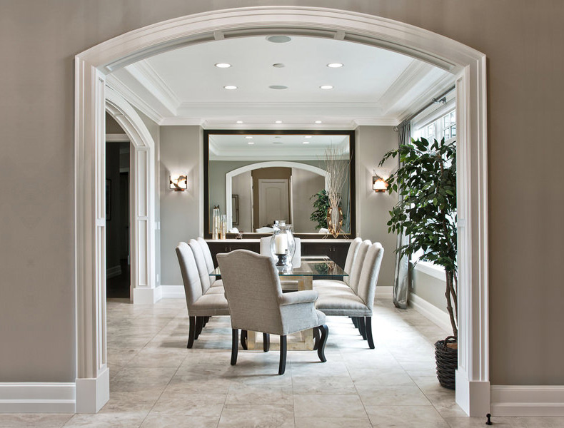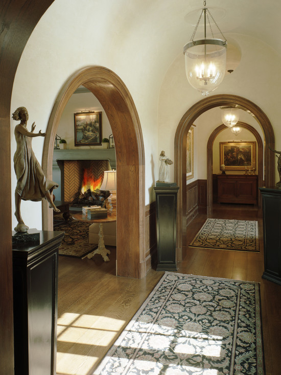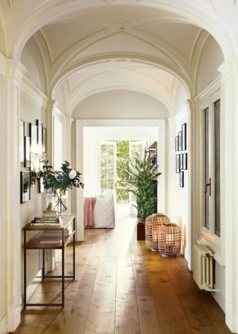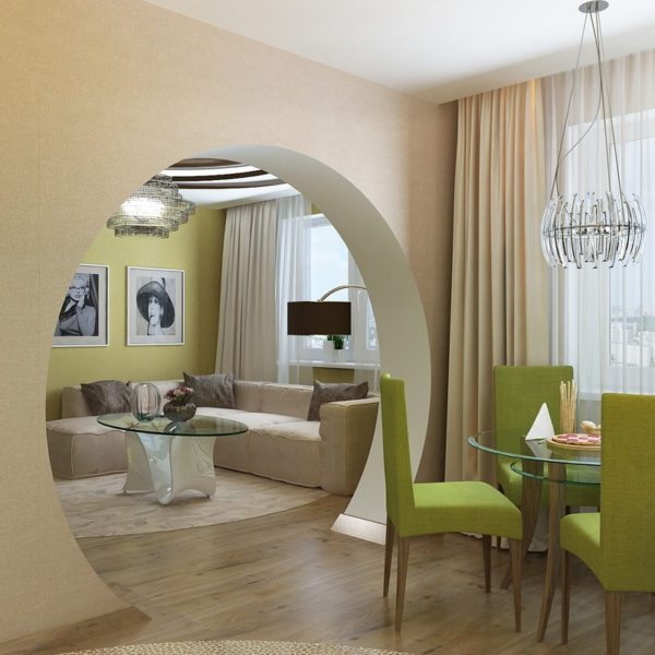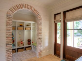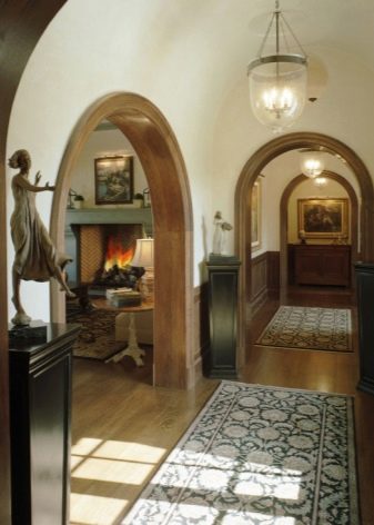 Arches often combine hallways and lounges or living rooms. In such cases, they are more likely to act as a conditional means of zoning a room than actually helping to separate these spaces. Thus they solve two problems at once: first, they expand the small and not always cozy hallway, and secondly, they allow guests to feel right at the door in a hospitable house.