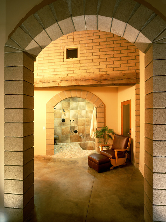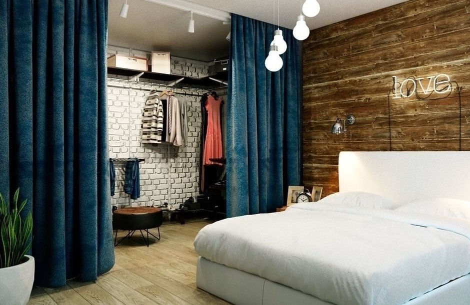 You can often come across cases when the door is abandoned. between the hallway and dressing room. Since both of these rooms are rather small and cramped, such a move helps to hide this fact, allowing people to feel freer.