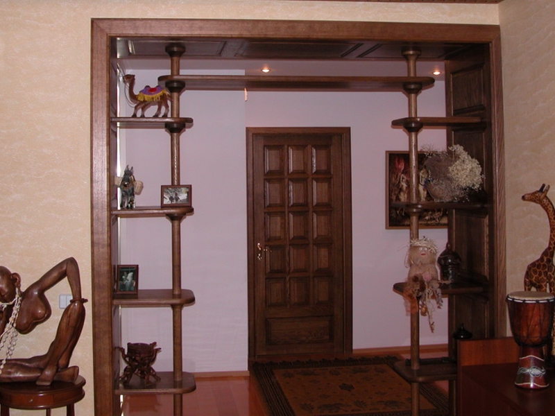 In some cases, doorless space looks much more attractive than the door, especially when it is beautifully decorated. For example, along the contour of such an opening often shelves are placed. The statuettes placed on them or other trifles beautifully frame the lumen, creating a unique atmosphere that cannot be repeated. Thus, sometimes an open doorway looks even more intimate than a thick oak door.