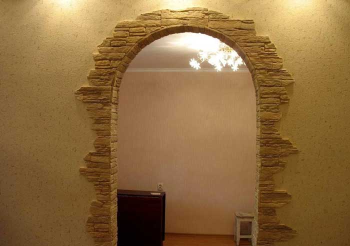The logical conclusion is that a doorway without a door is made completely without a doorframe. All decoration includes only the facing of the opening, which is performed using a variety of materials.