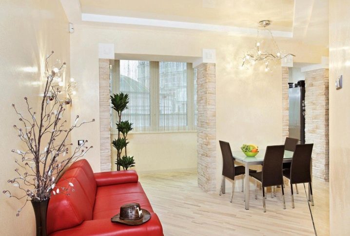 The old boring interior of the living room can be changed beyond recognition, at the same time competently expanding the usable area. If you abandon the separate balcony block and the door to the balcony, you can make the living room lighter. The balcony will certainly need to be furnished in a style similar to the living room, since the rooms, combined with a doorless view, should be perceived as a single whole.