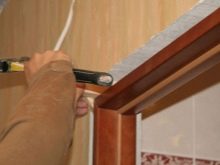 Installation of the door frame is carried out using wedges and bars, electric cutters, handsaws, stusla, drills.Additionally you will need foam and pencil, a building level, a knife with a thin pointed cutting edge, screws and nails with miniature caps. When the installation of the box is started, the slopes should be checked at least in three places both vertically and horizontally. A tolerance of five centimeters or more is unacceptable.It requires additional alignment. Do not forget to withstand the technological gap to the surface of the floor, it is 1.5 cm.