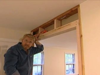 With such an overlap of the opening, it is worth considering the fact that this material does not have great strength. It will not work if in the future it is planned to install a heavy door made of solid wood, as it will simply not sustain it. This method is hardly suitable for a bathroom, as it can be deformed in the course of its “life”. Timber - wood that absorbs moisture well, can swell or crack.