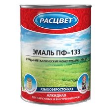 - PF-133. This modification of alkyd enamel is perfect for application to metal surfaces. Coloring has a long service life, which can be 6 years. At the same time, the technical characteristics and appearance of the coating do not change. PF-133 fast-drying enamel is applied on the surface in at least two layers. Dries such a coating for about two hours.