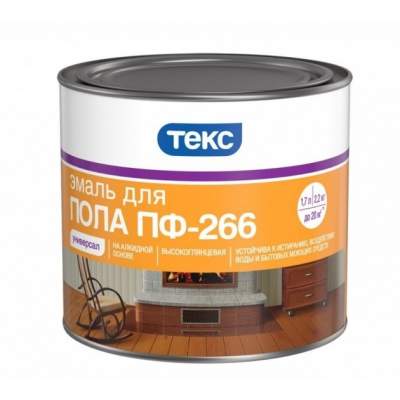 Universal paint PF-115 is suitable for most types of surfaces. You can work with this composition both inside and outside the room. The service life of the coating is five years. Enamel "Tex" for wooden floors is marked PF-266. This modification is highly resistant to mechanical stress, abrasion and household chemicals.