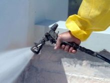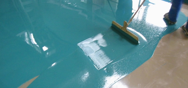 After the preparatory work, you can begin to apply the paint product. Apply any kind of epoxy product with a brush or roller, and you can also use a spray gun.