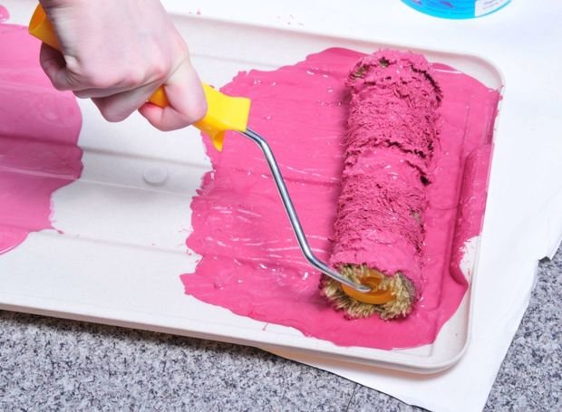 - Paint brush or roller. Brush is lowered into the paint about half, carefully shake off excess material. The roller is impregnated with a uniform layer so that excess drops of paint do not drip. This method of painting requires the application of paint in 2 layers.