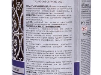 So that the material is better fixed on the tree, and the consumption of 1 m² was minimal, experts advise to infiltrate the base with linseed oil. Before use, pentaphthalic enamel is recommended to be stored in the original packaging at a temperature of 20 degrees for at least 24 hours.