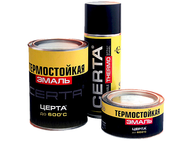 The heat-resistant anticorrosive Certa enamel is made in Russia by the Spektr company. For the convenience of consumers, it is packaged in cans weighing from 0.5 to 20 kilograms. Some types are commercially available in aerosol form only. The temperature range at which the composition can be operated is from -60 to +900 degrees.
