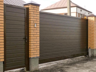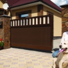 Material can be chosen practically any: from a professional flooring to polycarbonate. Such gates can be either with a solid canvas, or a wicket can be built into the canvas.