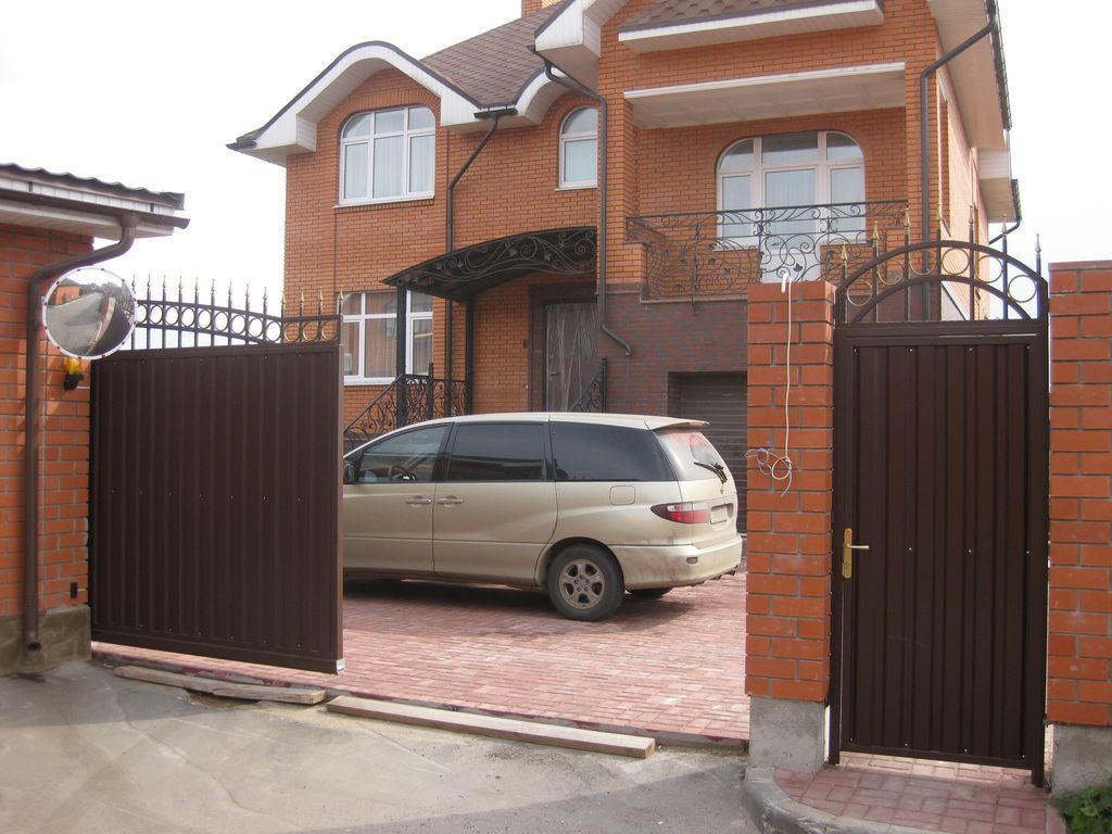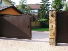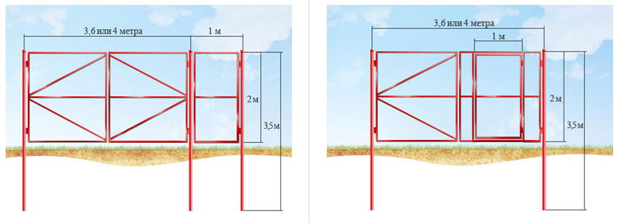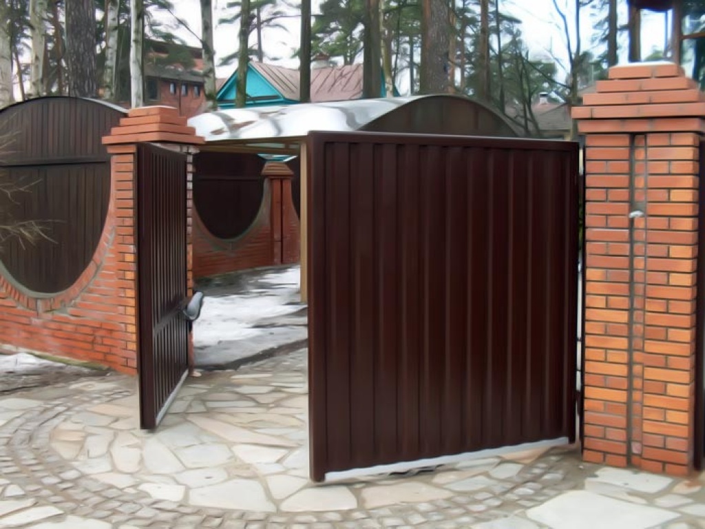 Such a gate is conveniently located near a private house. If they are opening outwards, it is imperative to clear the street area in front of them from snow. If they open into the courtyard, the snow should be cleaned only in the yard.