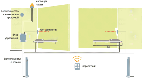 Remote control is subject to the same principles as control based on a stationary console. The door leaves are moved or moved apart by the door drive when power is applied to the motor. When the engine shuts down, the action is terminated. The automation unit works on the basis of this principle.