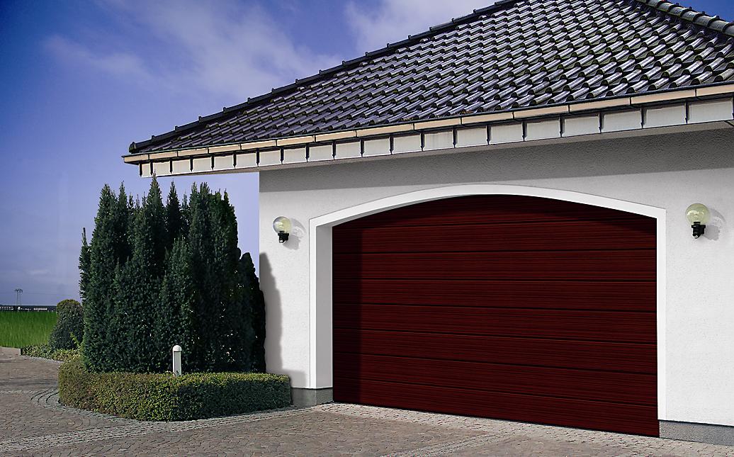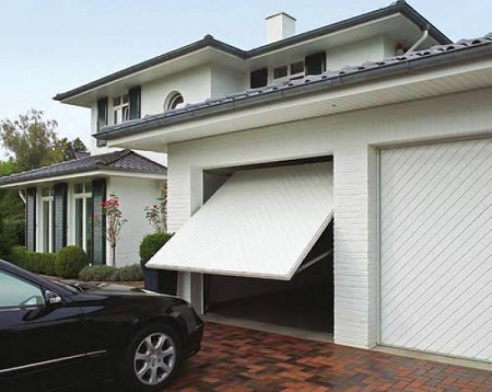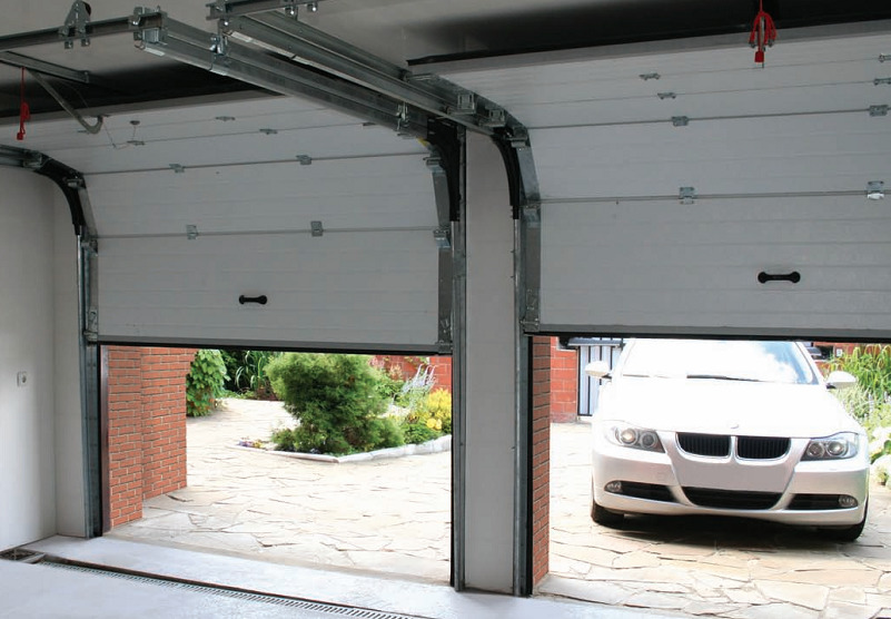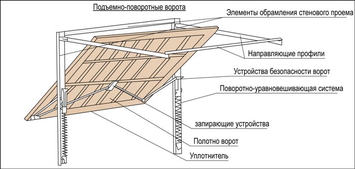 The main difference between garage doors and other types is that they are vertical and folding. Rolling construction consists of metal-plastic rails, which are connected by a movable lock. When the gate is opened, the slats “leave” upwards, forming a right angle and overcoming it at the junction of the wall and ceiling. The lifting-swivel mechanism is very difficult to install and operate; when opening the gate, the structure goes up parallel to the ceiling and frees entry to the garage.