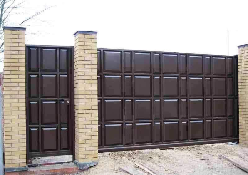 Steel pipe is useful for the manufacture of mounting posts. If the pipes do not withstand the gravity of the gate, there is a way out - to make a frame of steel in the shape of a letter P. Then the building will not lead in the future. To secure the sash, you can use loops of metal or polymer. They are usually 4 or 6. The components of the sash are the frame and the filling panel. The skeleton can be made from the metal profile itself, and the sections - from sandwich panels or metal cladding. Metal and steel parts to be painted. Door closers can be installed on the gates.