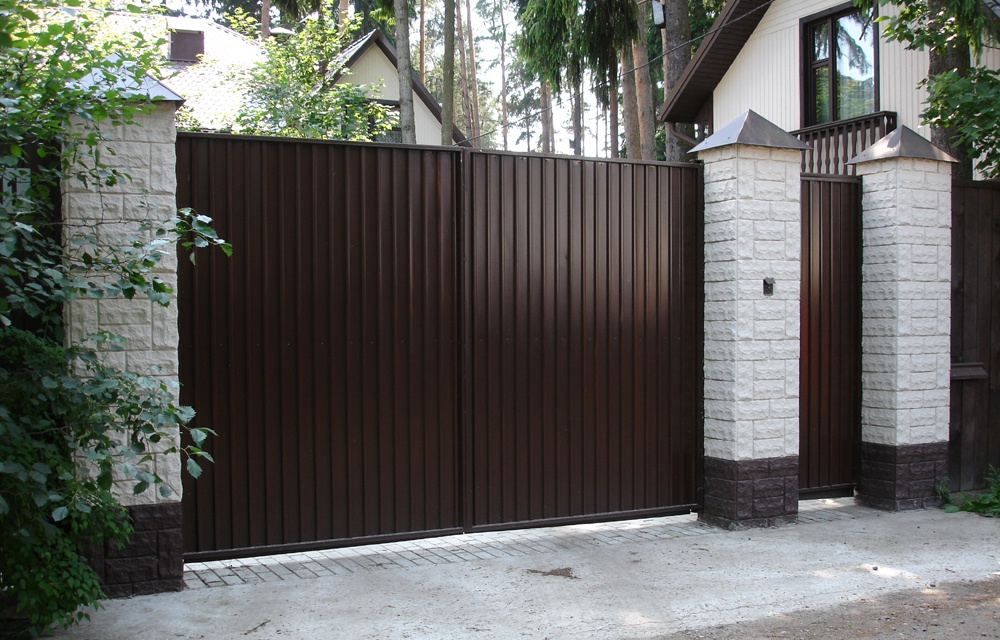 Retractable gate is a roller design, most often single-door. There is no difficulty in its technical device, so you can do it yourself. In this case, the operation of such devices is quite complicated. The main advantage of this type of gate is that they save spacebesides, there is no need to clean the area in front of them. The canvas for such gates can be made of any material suitable for the manufacture of fences - wood, metal, decking and others. Sliding gates are designed in such a way that they can work smoothly during snowfall and strong winds. Ice is not a hindrance either. In addition, they are very compact.