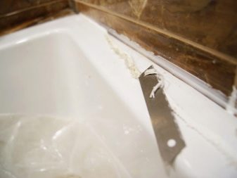 - If the sealant is to be removed from the acrylic bath, then you can work only with specialized compositions for such products, all other options will spoil the appearance and surface layer, which after work will have to be further restored.