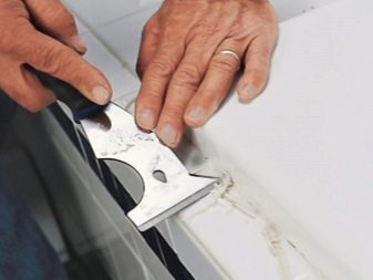 - For those surfaces that are not afraid of pressure and scratches, it is easier and more efficient to use a mechanical impact. It is most convenient to work with a conventional knife, but it is advisable to carry a flathead screwdriver and a simple razor blade with you. For the complete removal of the sealant from the surface it will be little to use the tools at hand, the most reliable option is to purchase a specialized knife or scraper for the sealant. There are manufacturers who produce such equipment with rubber nozzles on the sharp part, which makes it possible to neatly and quickly apply a new layer of sealant, while not acquiring additional tools.