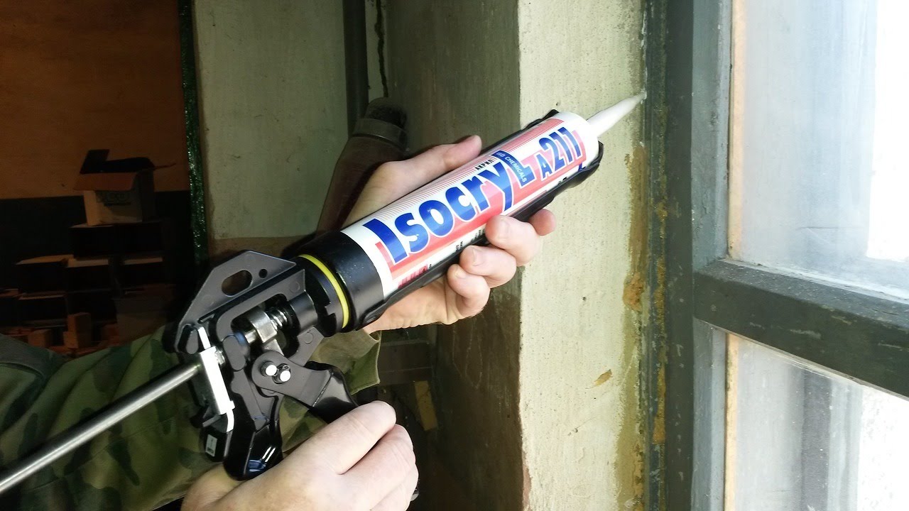 - Acrylic may be applied to places treated with foam. It is a good and affordable material that fits perfectly with many types of surfaces, even wet ones. Most often, white varieties of sealant can be found, although transparent materials are also produced. Acrylic sealant can be used as a putty for crevices and cracks that may appear after installing the window.It is a vapor-permeable material, it is able to absorb moisture and darken from that.