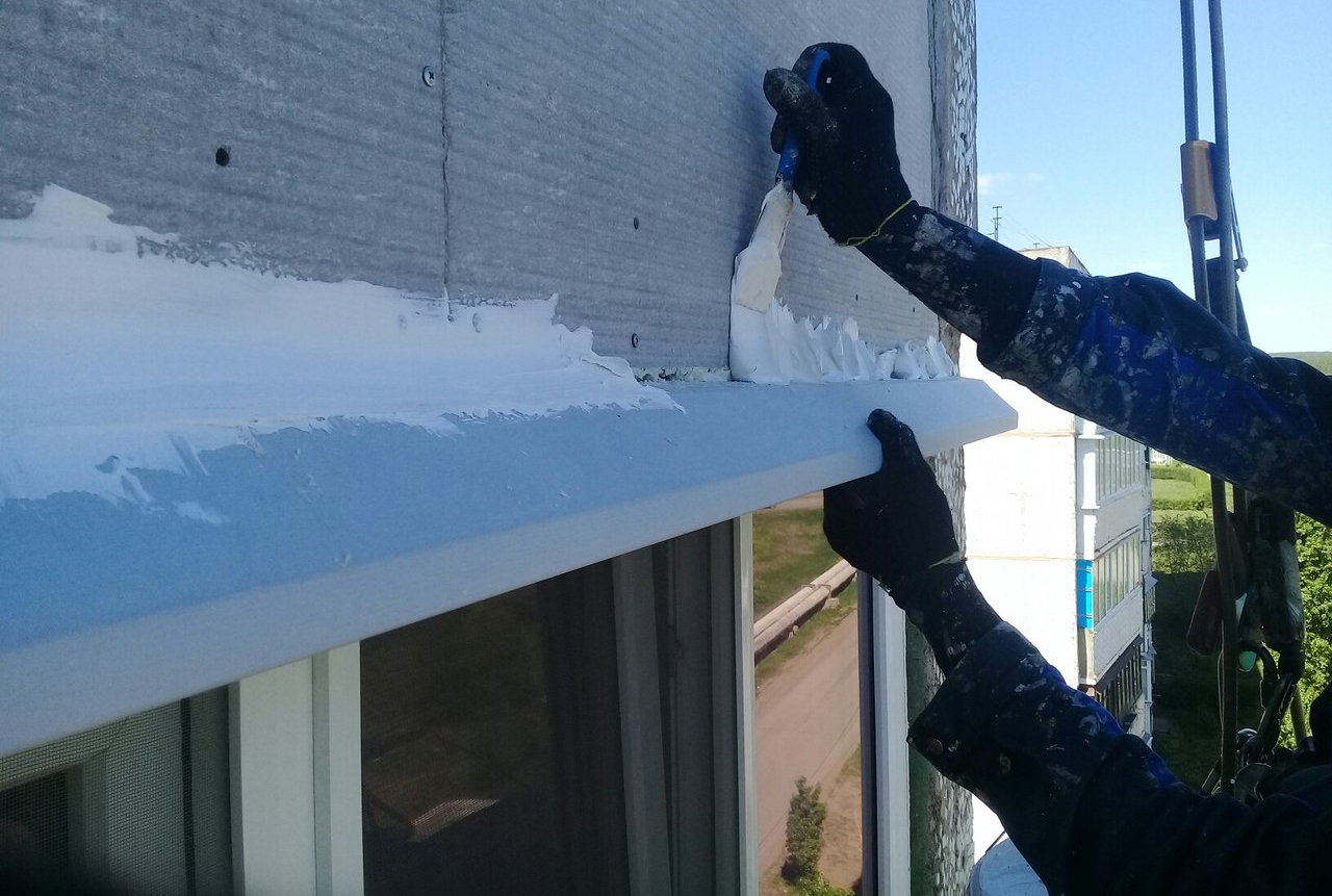 - filling cracks and processing seams of external and internal type, which are formed between the walls and windows during installation or re-sealing of aluminum, wooden or plastic boxes;