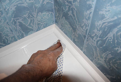 - When processing a protective corner near the bath, first squeeze the sealant on the wall and the shelf of the bath, then put the part itself and press it.