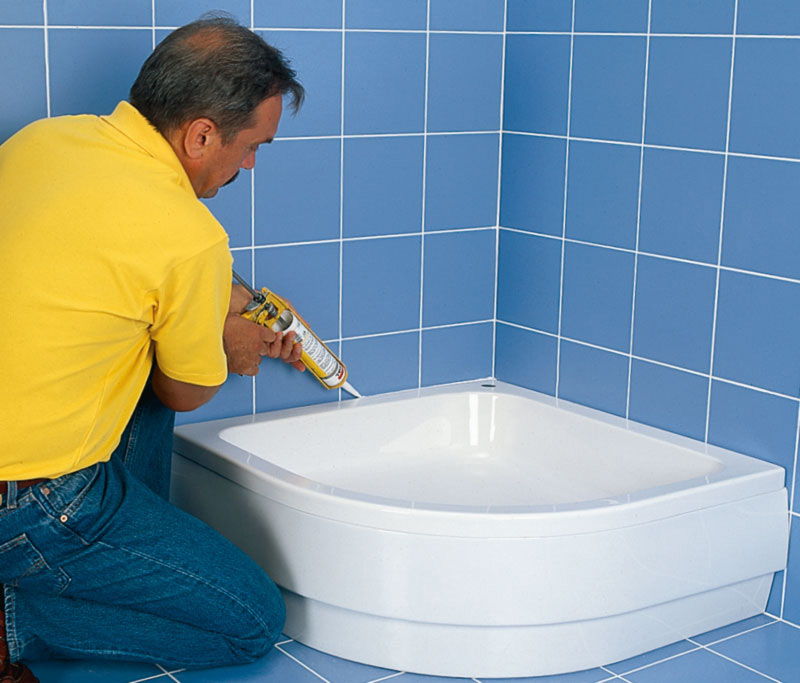 But working with these compounds in the bathroom is difficult: prevent their poor adhesion to plastics. They will qualitatively close the joint between the wall and the metal bath or the faience washbasin, but in order to install the acrylic bath, you will have to look for another means.