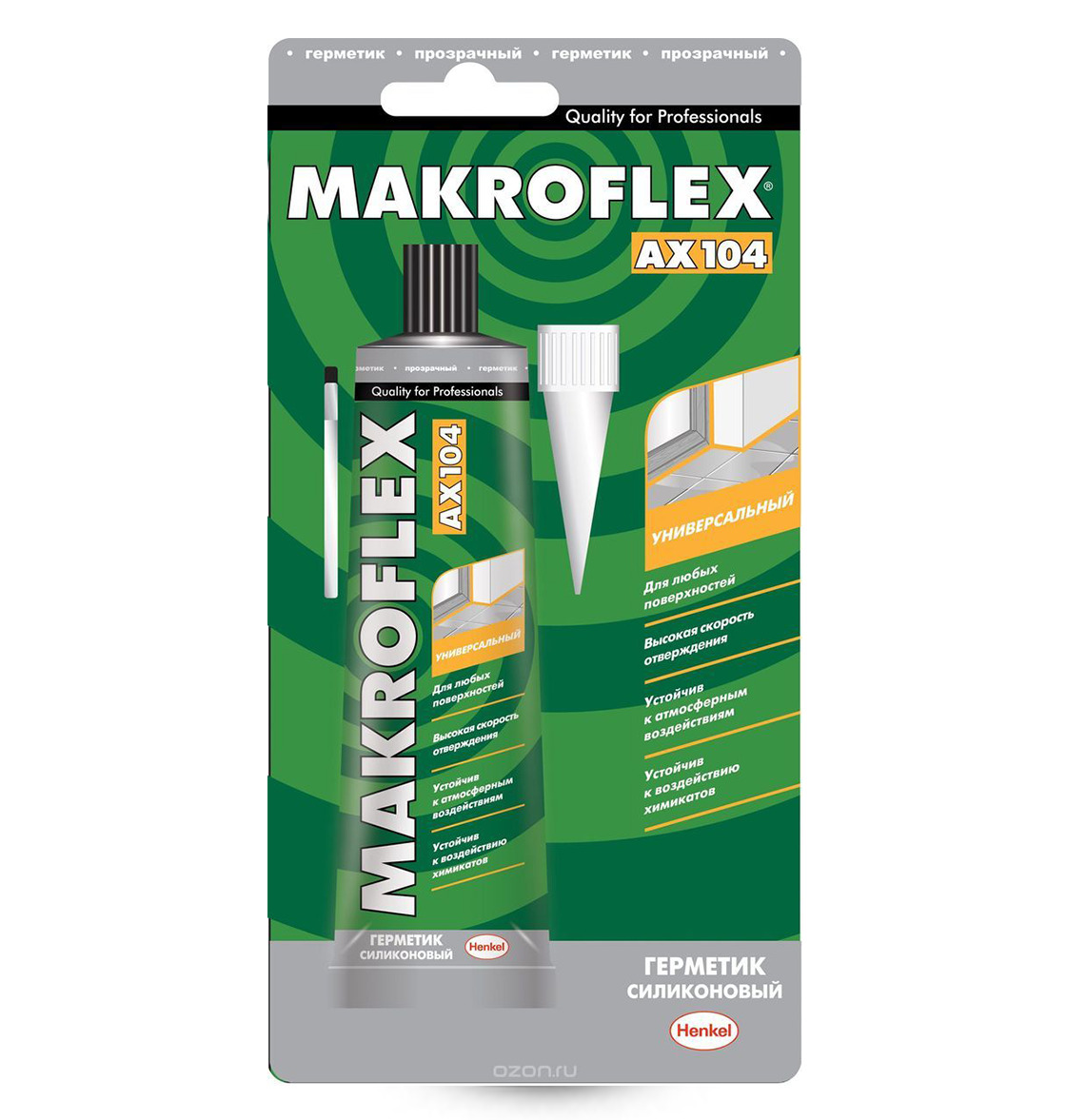 - Universal silicone AA105 and AX104 - This is a one-component solution for filling the seams. The advantages include high traction, elasticity, resistance to moisture and the action of chemical elements.The scope of application is general construction works of various types, machine repair, glazing works.