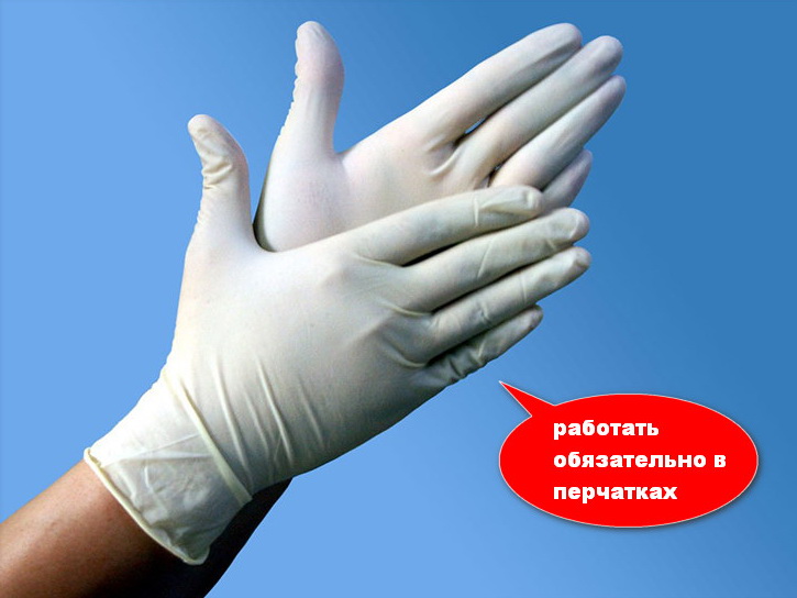 When working, it is recommended to use rubber gloves, as only in this way can the skin of hands be protected from the impact of the composition.